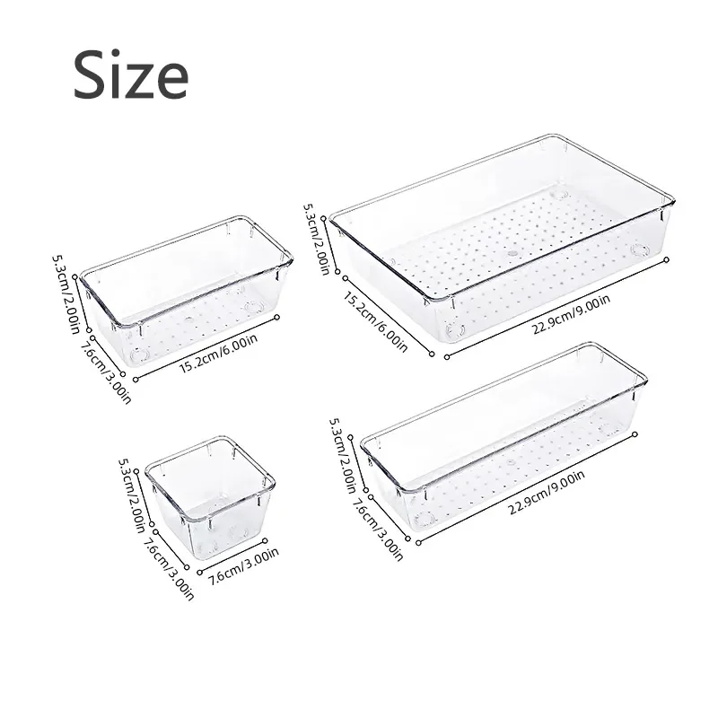 This clear drawer organizer set is perfect for keeping your desk, dresser, or office neat and tidy. Available in 7 or 14 pieces, it provides versatile storage options for a variety of items. Made from durable plastic, each organizer is sturdy and easy to clean. Ideal for storing makeup, jewelry, gadgets, and other small accessories. The clear design allows you to easily see and access your items at a glance. These organizers help separate and categorize belongings, reducing clutter and saving time. Lightweight yet durable, they fit neatly into drawers of different sizes. Perfect for bedrooms, offices, or craft spaces. Easy to assemble and rearrange according to your storage needs. Keep your personal and workspaces organized with this practical clear drawer organizer set.
